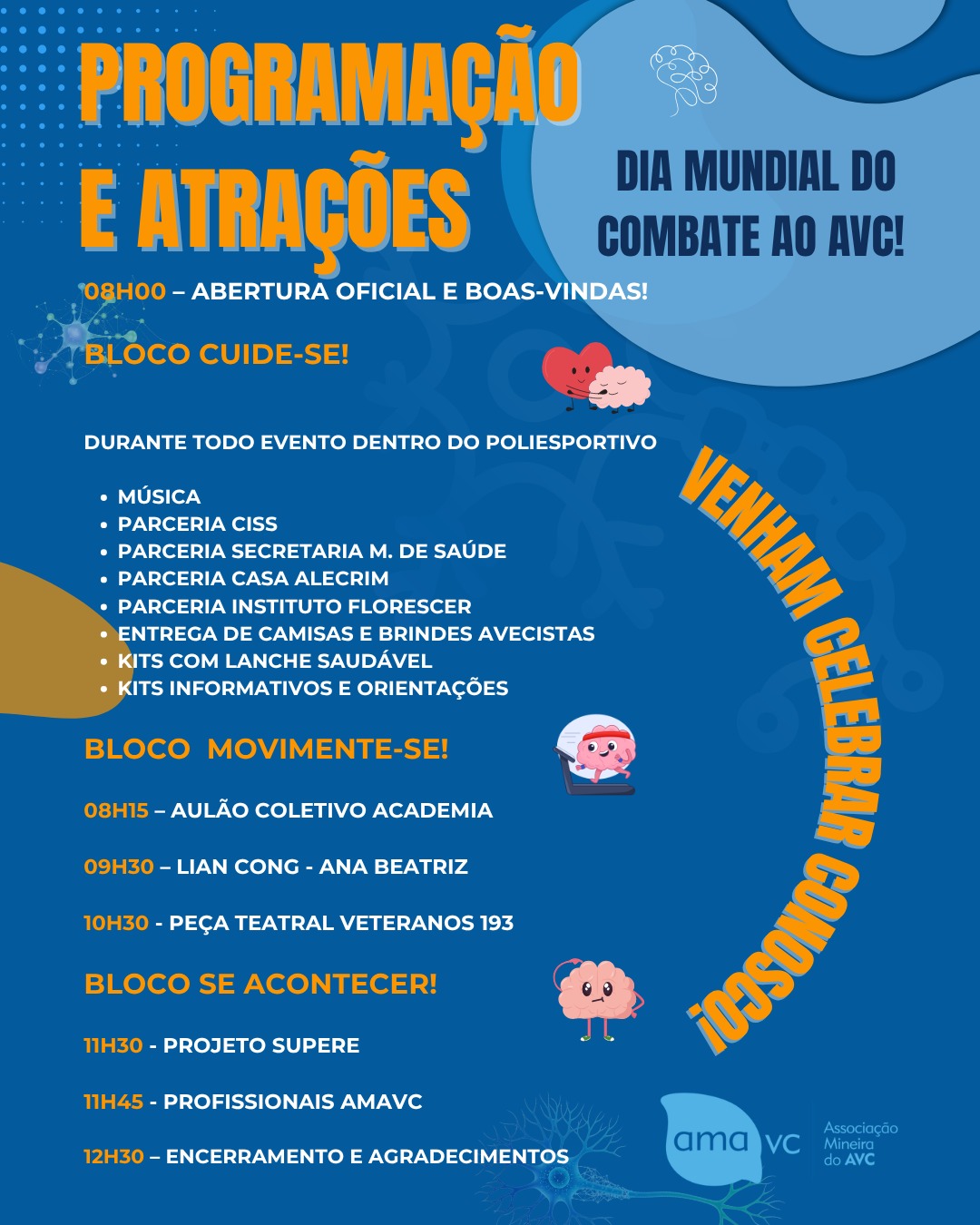 A AMAVC está preparando uma manhã muito especial em comemoração ao Dia Mundial do Combate ao AVC (29/10), e queremos que vocês façam parte dessa celebração conosco!